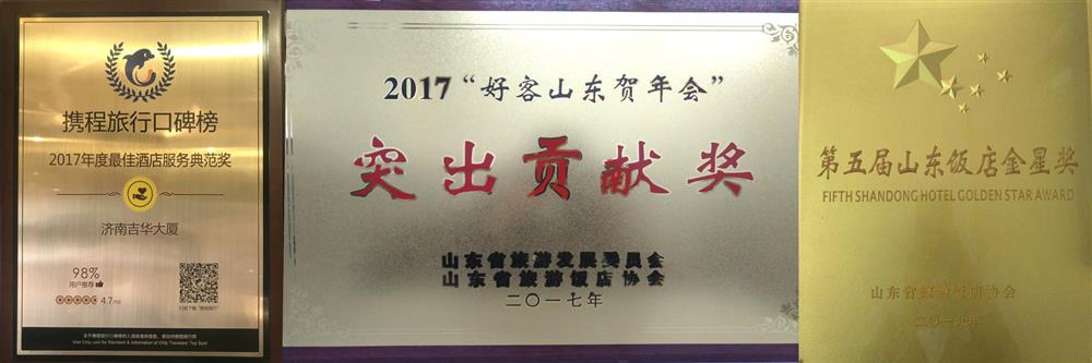2017“好客山東賀年會(huì)”突出貢獻(xiàn)獎(jiǎng)(山東省旅游發(fā)展委員會(huì)、山東省旅游飯店協(xié)會(huì), 2017.1)