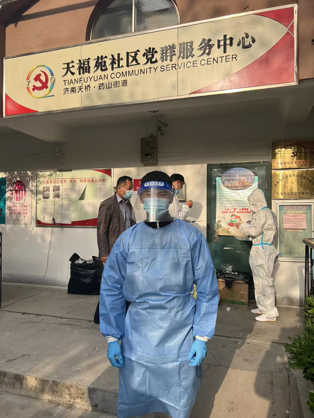 4月27日一早,來自濟南科技創(chuàng)業(yè)投資集團(tuán)有限公司黃金和張澤陽就趕赴胥家村,站好健康查驗點的第一班崗;濟南經(jīng)發(fā)基金管理有限公司的崔家浩與天橋區(qū)天福苑檢測點人員正做著做好核酸檢測維持秩序工作;濟南產(chǎn)發(fā)資產(chǎn)管理有限公司的任政分配到槐蔭區(qū)興福街道濟西社區(qū),與其他參與防疫的人員一起接受崗前培訓(xùn)后,迅速上崗;濟南經(jīng)發(fā)中小企業(yè)服務(wù)有限公司的謝炳怡與小鴨集團(tuán)的劉玉峰、金德利集團(tuán)的劉相濤一起前往高新區(qū)臨港街道,接受工作任務(wù)。隨后,趙梓淇、董振興、高志翔、張樂等幾名同事也投身于防疫的志愿者隊伍中。