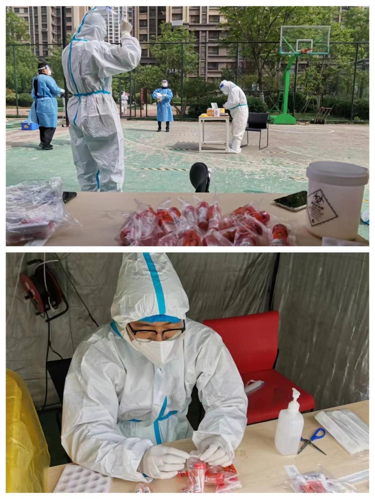 社區(qū)疫情防控情況復雜,工作量巨大,但沈俊峰始終保有退伍軍人的正直秉性,帶領兩位年輕人沖鋒在前。到崗第二天,三名下沉社區(qū)人員就立即投入工作狀態(tài),協(xié)助社區(qū)嚴格落實每一個居民應檢盡檢,從早上7點到晚上11點,連續(xù)工作十多個小時,完成近3000人的核酸檢測工作。
