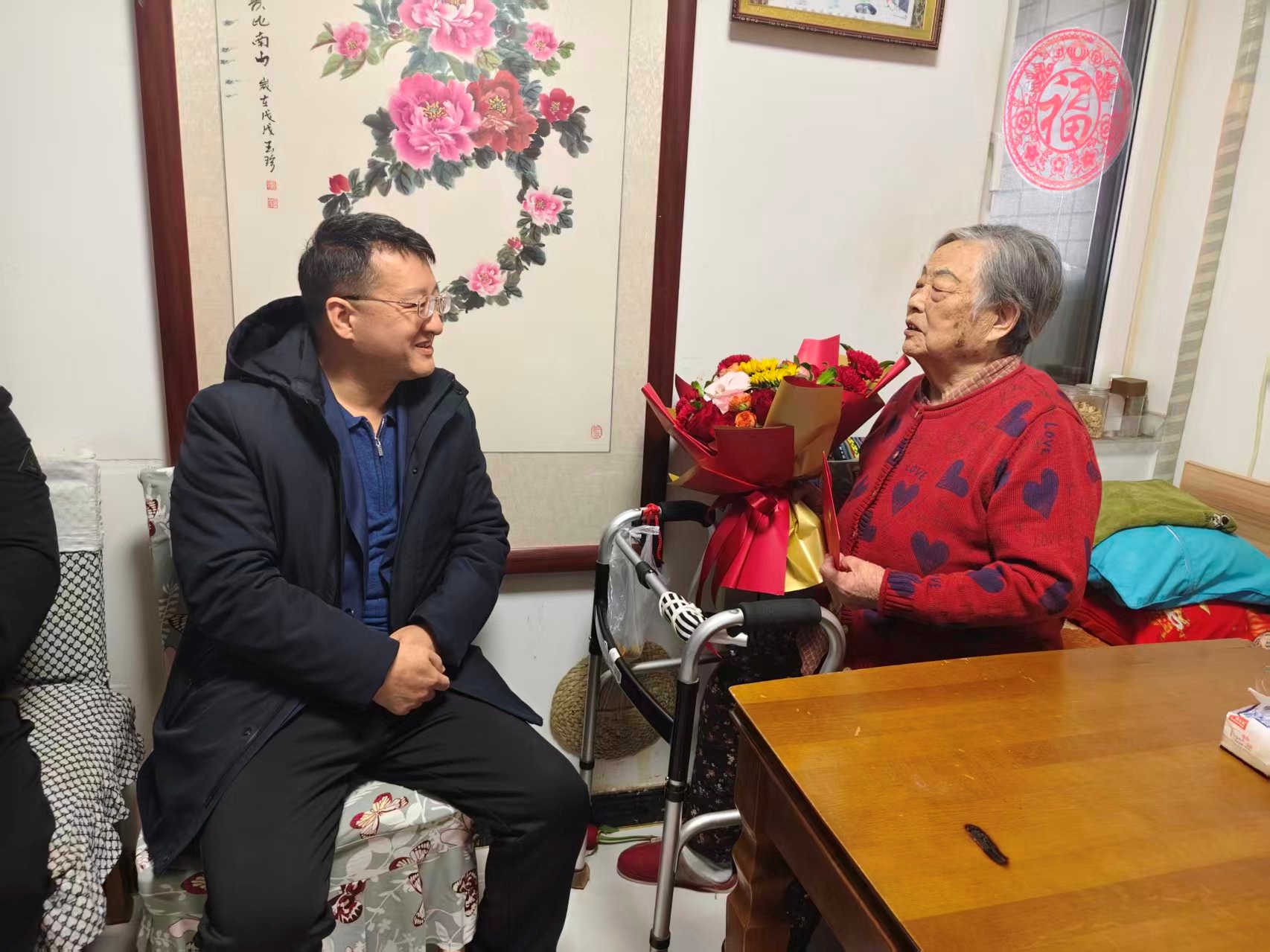 在濟糧集團張秀翠家中,崔鵬為老人送上新春佳節(jié)美好祝福,認真傾聽老干部對集團工作的意見建議。已92歲高齡的張秀翠老人曾在濟南面粉廠醫(yī)務(wù)室擔(dān)任醫(yī)師,工作任勞任怨。在交流中,張秀翠老人回憶起往昔的奮斗歲月,眼神中滿是堅定與自豪。崔鵬對老干部為企業(yè)發(fā)展作出的積極貢獻表示誠摯感謝與深切敬意,他叮囑老人要保重身體、安享晚年,同時希望老人繼續(xù)發(fā)揮經(jīng)驗優(yōu)勢,多為集團的建設(shè)發(fā)展提出寶貴意見。